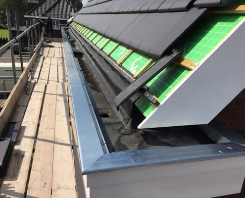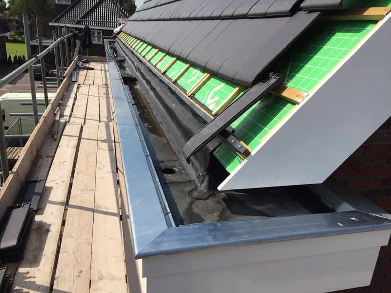 Op het dak worden de Unidek platen neergelegd waarna we de dakpannen gaan leggen.