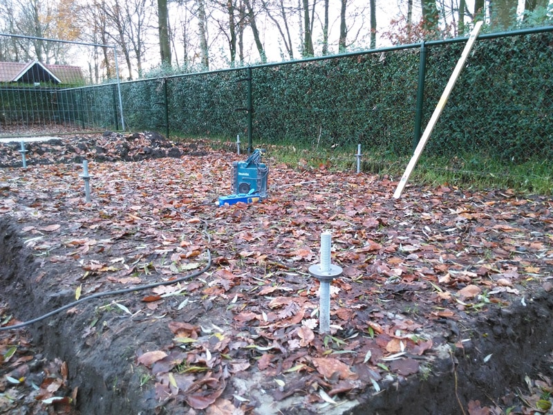 We starten met de basis het zetten van een bouwraam. Dit geeft ons precies weer wat de omvang is en waar de grond weggeschept kan worden. Daarna gaan we de grondankers storten. De basis is gezet. Nu kunnen we gaan bouwen